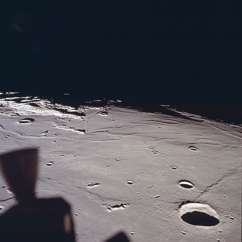 The following is a photograph taken over the moon of the landing site for Apollo 11.