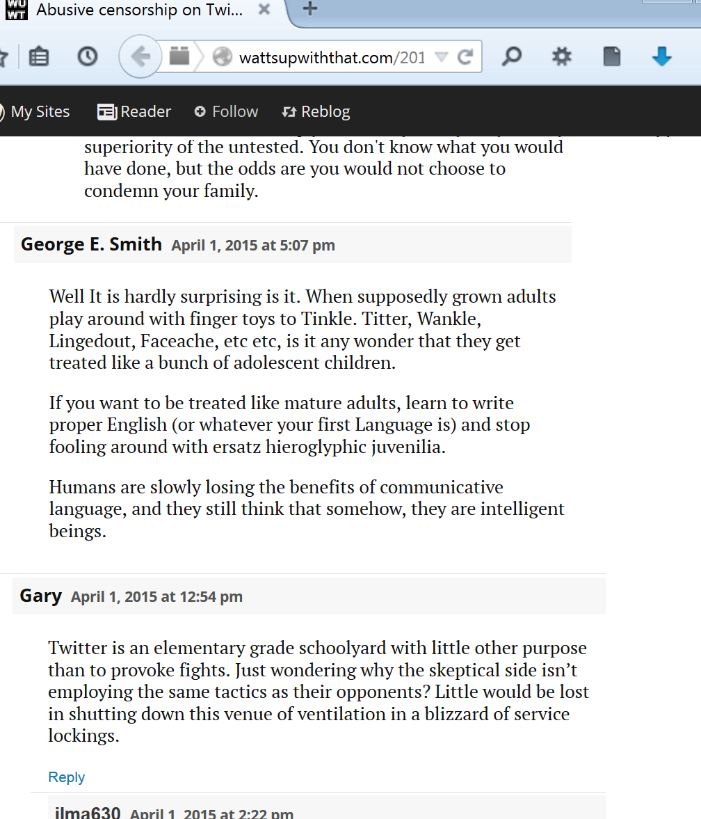 There were some disparaging comments about the Twitter platform in the initial WattsUpWithThat article about the Tom Nelson suspension.